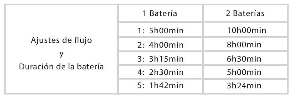 Duración y ajustes de la batería: